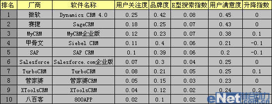 就這次CRM關注榜的品牌來看,前三位被微軟、賽捷、MyCRM占據。微軟作為軟件業(yè)的巨人,自從2002年1月25日發(fā)布CRM,宣布正式進入CRM領域,微軟一直按著自己的路線圖,充當著管理軟件領域的一匹黑馬,與操作系統(tǒng)等軟件定位不同,其CRM定位鎖定于中小企業(yè)用戶。位居第二位的賽捷是全球第四大管理軟件公司,也是推出CRM軟件較早的企業(yè),但賽捷發(fā)力國內市場為時較晚。而第三位的MyCRM中國本土化的CRM廠商的杰出代表。