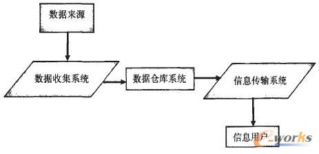 如圖1所示。CRM由數(shù)據(jù)收集、數(shù)據(jù)倉(cāng)庫(kù)和信息傳輸三部分組成。數(shù)據(jù)收集系統(tǒng)將來(lái)自內(nèi)部與外部的數(shù)據(jù)送到數(shù)據(jù)倉(cāng)庫(kù),經(jīng)分析后從數(shù)據(jù)中獲得信息。數(shù)據(jù)是難以直接應(yīng)用的,而信息則揭示了一些以前并不了解的事情。