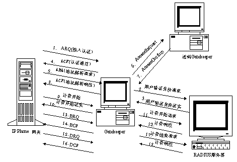 2、用戶認證:網(wǎng)關用ARQ把用戶卡號和密碼發(fā)給網(wǎng)守,網(wǎng)守再把卡號和密碼送給計費認證中心,如果計費認證中心認證通過,網(wǎng)守向網(wǎng)關發(fā)ACF,否則回ARJ。