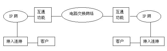 第三階段的重點(diǎn)是電路交換網(wǎng)通過IP網(wǎng)至電路交換網(wǎng),即實現(xiàn)以Internet作為傳送手段進(jìn)行通信的目的,其示意圖如圖所示。
