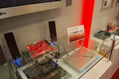 SigmaTel是給家庭影院增加了VOIP功能,如果你在聽音樂的時候想和朋友通話,你可以利用PC上的無線VOIP和數(shù)字麥克風(fēng)輕松實(shí)現(xiàn)交流。SigmaTel的STAC9271、9272、9273等系列產(chǎn)品是10聲道音頻編解碼器,可以實(shí)現(xiàn)帶同步VOIP或立體聲7.1音頻系統(tǒng)。利用SigmaTel的knowles麥克風(fēng)波束成型、回聲消除和噪聲抑制技術(shù),可以獲得清晰的VOIP通話質(zhì)量。SigmaTel亞洲區(qū)軟件開發(fā)經(jīng)理辛志華表示,這方面的開發(fā)難點(diǎn)是軟件部分,不SigmaTel可以提供全套的軟件幫助客戶快速開發(fā)出產(chǎn)品。