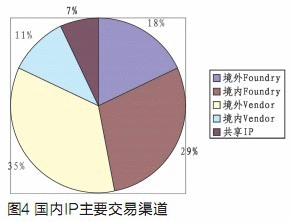 而境外的IP Vendor因?yàn)槟軌蛱峁┚邆滟|(zhì)量?jī)?yōu)勢(shì)和技術(shù)優(yōu)勢(shì)的IP核,也成為主要的IP交易渠道之一。具體的數(shù)據(jù)參見(jiàn)圖4。