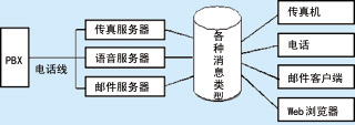 統(tǒng)一消息具有使用簡單和節(jié)省時(shí)間等顯著的優(yōu)點(diǎn),而它給人們帶來的益處恰好就在這些看似平凡的地方。如果能夠把語音郵件、傳真、電子郵件等變成單一的“消息”,就可以大幅度減少用于傳送手段和方法等耗費(fèi)的時(shí)間和精力,而人們就可以用這些時(shí)間和精力去改善消息本身的內(nèi)容和質(zhì)量。那么,它在技術(shù)上是如何實(shí)現(xiàn)的呢?