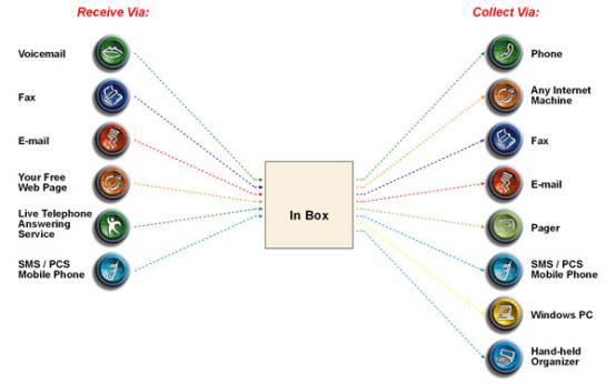 Ø 由固定/移動(dòng)電話運(yùn)營(yíng)商、ISPs 以及ASPs提供服務(wù)。服務(wù)包括單一信息通知到完全統(tǒng)一信息。用戶可將其所有類(lèi)型的信息存儲(chǔ)在一個(gè)信箱中并且通過(guò)電話或網(wǎng)絡(luò)瀏覽器獲取。