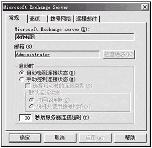 教師將在一臺(tái)裝有攝像頭、麥克風(fēng)的局域網(wǎng)終端(教師機(jī))上安排會(huì)議并進(jìn)行授課。會(huì)議的安排和召開必須利用Outlook中的日程安排功能。第一次運(yùn)行Outlook時(shí)將出現(xiàn)設(shè)置向?qū)Т翱,選擇“用于企業(yè)工作組”,選用“Exchange Server”服務(wù),在Exchange服務(wù)器名中填入服務(wù)器的計(jì)算機(jī)名“65yzfwq”,郵箱則必須填“Administrator”,輸入相應(yīng)密碼(如圖2所示)。