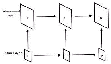 關于分層可擴展性編碼的研究可以追溯到10年前,目前它已經被許多現(xiàn)行的國際壓縮標準接納,例如H.263+和MPEG-4。分層可擴展編碼主要有三種:時域可擴展性、空域可擴展性和質量可擴展性。其中質量可擴展性也稱為PSNR可擴展性,原因是視頻質量通常用峰值信噪比(PSNR)來衡量。