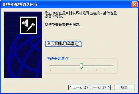 選擇幫助->音頻設(shè)備配置向?qū)?圖2),會彈出“音頻設(shè)備配置向?qū)А贝翱?圖3),這個向?qū)䦷椭銓P聲器、麥克風(fēng)、回音、網(wǎng)絡(luò)連接等項目進(jìn)行標(biāo)準(zhǔn)的測試和設(shè)置。