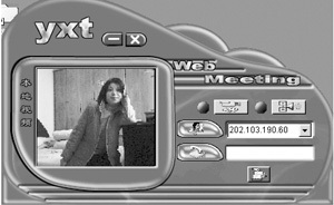 視頻目錄服務(wù)器的IP地址已在主界面中顯示,如“202.103.190.60”。你只需點(diǎn)擊前面有兩個(gè)人頭像的“連接目錄服務(wù)器”按鈕,就可以登錄視頻目錄服務(wù)器。這時(shí)你可看到所有登錄者的信息。如果你想同哪位朋友聊天,你可用鼠標(biāo)雙擊你想與之聊天的朋友的信息,WebMeeting會(huì)馬上為你進(jìn)行聯(lián)系,接通后響起一陣電話鈴聲并會(huì)彈出一個(gè)名為“遠(yuǎn)程視頻”的窗口,對(duì)方的視頻畫面會(huì)顯示在其中。用它來跟千里之外的朋友進(jìn)行溝通真是方便,筆者就嘗試用它來進(jìn)行QQ朋友“相面”;舉行遠(yuǎn)程朋友聚會(huì);親身示范教別人學(xué)習(xí)電腦使用及解決電腦故障;了解異地商品優(yōu)劣;欣賞異地風(fēng)光(將攝像頭對(duì)準(zhǔn)大街);甚至還可來個(gè)重要事件現(xiàn)場(chǎng)直播等等。