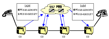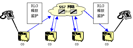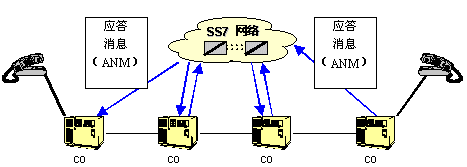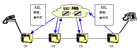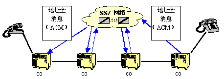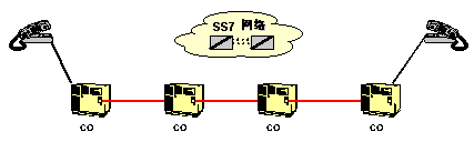 下面圖示SS7信令系統(tǒng)的呼叫流程: