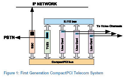 CompactPCI總線(xiàn)是中斷驅(qū)動(dòng)的,并且提供了對(duì)附屬CompactPCI外圍串行卡的確定性的控制。TDM,H.110數(shù)據(jù)總線(xiàn)為各個(gè)數(shù)據(jù)傳輸分配時(shí)隙。這種低時(shí)延的總線(xiàn)為實(shí)時(shí)應(yīng)用提供了優(yōu)異的性能。一個(gè)IP網(wǎng)絡(luò)(以太網(wǎng))接口能起到管理接入點(diǎn)或電信系統(tǒng)的管理點(diǎn)的作用。這樣的系統(tǒng)或許可以用作基本的計(jì)算機(jī)電話(huà)應(yīng)用,例如商用PBX。另外,IP接口可能被用作接入新的增值業(yè)務(wù)。