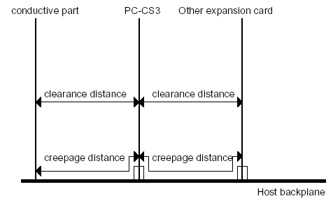 主機或其他適配卡使用的或者產(chǎn)生的電壓 短路(mm) 漏電(mm)