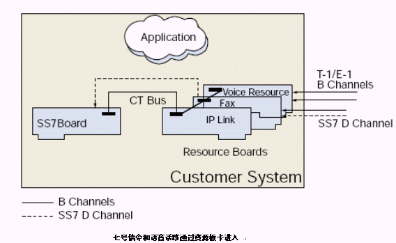 - B 通道直接通過CTbus通過七號(hào)信令板卡路由到語音資源板卡