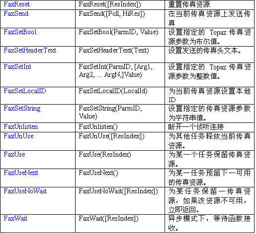 必須注意傳真資源只能收發(fā)傳真數(shù)據(jù),所有其他需要呼出或呼入電話的操作應由中繼資源或媒體資源完成。