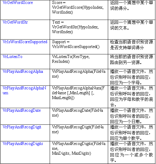 語音識別資源把呼叫者的語音轉變?yōu)槲谋咀址。一個VR資源可以對一個語音流數(shù)據(jù)(來自一中繼或會議資源)進行識別。