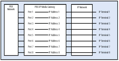 PBX-IP 媒體網(wǎng)關(guān)經(jīng)常需要地址轉(zhuǎn)換來(lái)把連接到網(wǎng)關(guān)的數(shù)字電話(huà)映射到IP地址.